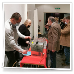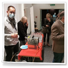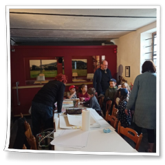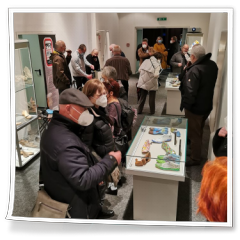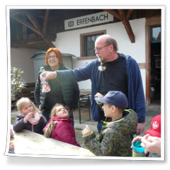 Nachdem die Gruppen getauscht hatten und es auf 12 Uhr zuging, ging der Besuch leider schon zu Ende. Wir hatten noch eine Stärkung mit Getränken im Hof des Museums vorbereitet und es gab noch ein kleines Abschiedsgeschenk, das Gabi Götz für die Kinder vorbereitet hatte. Hier auch noch der Dank an die Getränke- und Papierspende durch Gabi und Paul-Peter Götz.