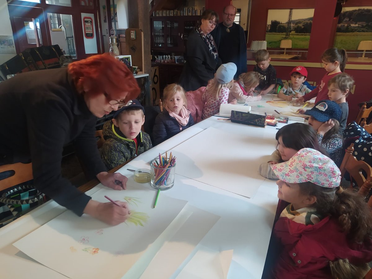 Das Künstlerhaus erreichte Mitte März eine Anfrage von Susanne Nürnberger, einer Erzieherin der Kita Knirps aus Erfenbach, ob sie mit Kindern ihrer Blauen Gruppe das Künstlerhaus besuchen könnten. Hintergrund war, das ihre Gruppe sich momentan in einem Kunstprojekt mit Kunst und den verschiedenen Kunststilen beschäftige. Gerne waren wir bereit die Gruppe bei uns im Künstlerhaus zu empfangen, man kann ja nie früh genug damit beginnen den Künstlernachwuchs zu fördern ;-)